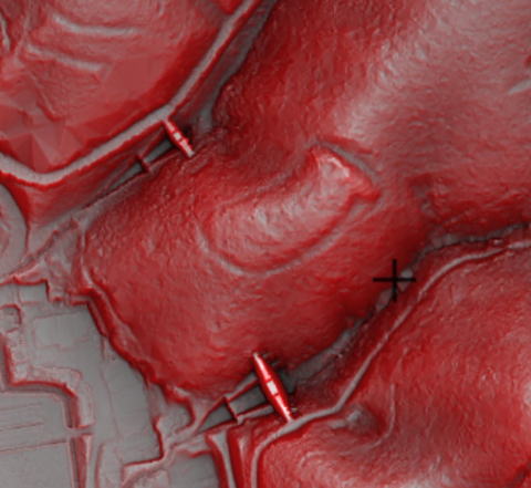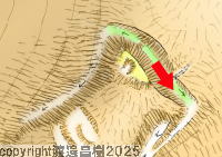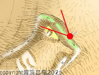 〈注)”天使の輪遺構” とは、CS立体図上で、丸く堀のように陰影が囲む地形を言います
